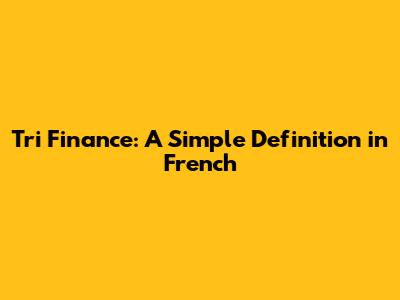 Tri Finance: A Simple Definition In French
