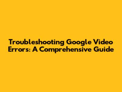 Troubleshooting Google Video Errors: A Comprehensive Guide