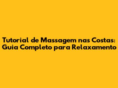 Tutorial De Massagem Nas Costas: Guia Completo Para Relaxamento