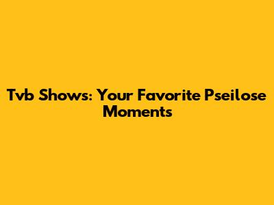 Tvb Shows: Your Favorite Pseilose Moments