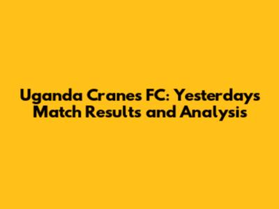 Uganda Cranes FC: Yesterday's Match Results And Analysis