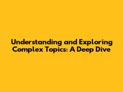 Understanding And Exploring Complex Topics: A Deep Dive