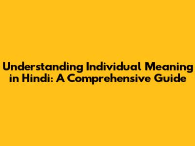 Understanding 'Individual' Meaning In Hindi: A Comprehensive Guide