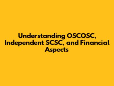 Understanding OSCOSC, Independent SCSC, And Financial Aspects