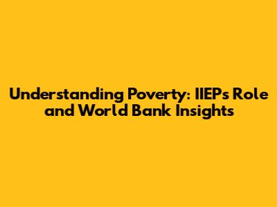 Understanding Poverty: IIEP's Role And World Bank Insights