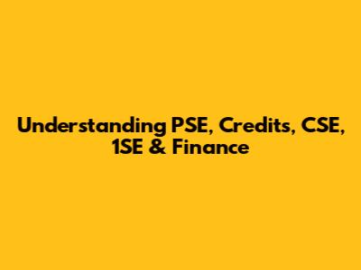 Understanding PSE, Credits, CSE, 1SE & Finance