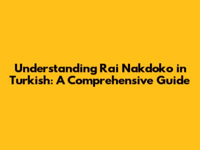 Understanding 'Rai Nakdoko' In Turkish: A Comprehensive Guide