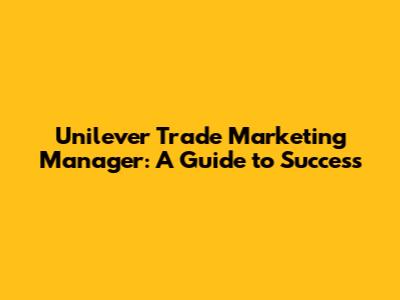 Unilever Trade Marketing Manager: A Guide To Success