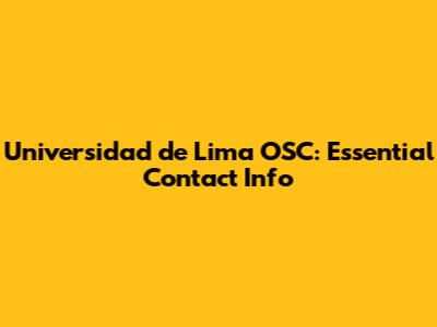 Universidad De Lima OSC: Essential Contact Info