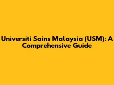 Universiti Sains Malaysia (USM): A Guide