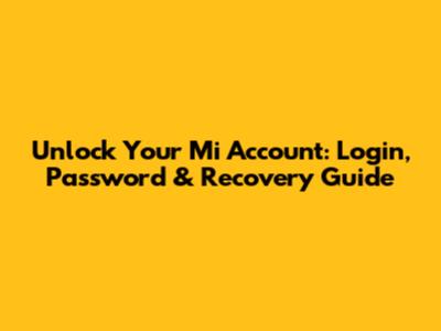 Unlock Your Mi Account: Login, Password & Recovery Guide