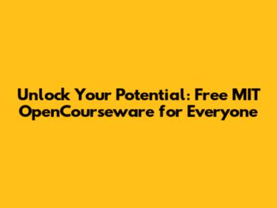 Unlock Your Potential: Free MIT OpenCourseware For Everyone