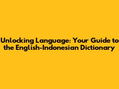 Unlocking Language: Your Guide To The English-Indonesian Dictionary