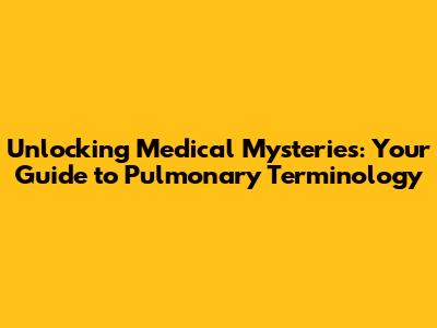 Unlocking Medical Mysteries: Your Guide To Pulmonary Terminology
