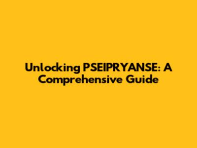 Unlocking PSEIPRYANSE: A Comprehensive Guide