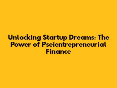 Unlocking Startup Dreams: The Power Of Pseientrepreneurial Finance