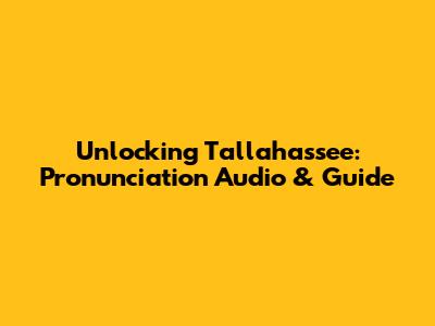 Unlocking Tallahassee: Pronunciation Audio & Guide
