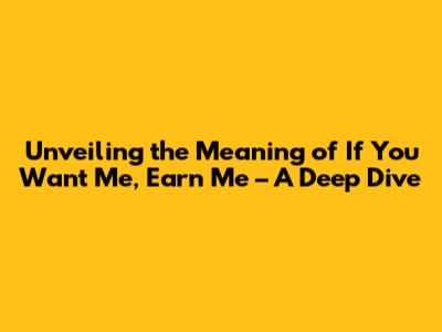 Unlocking The Meaning: 'If You Want Me, Earn Me' Explained
