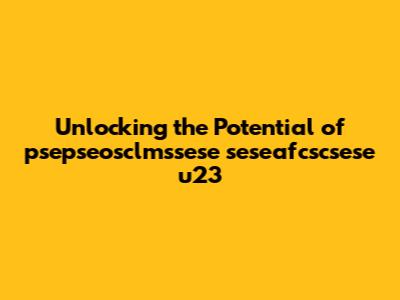 Unlocking The Potential Of Psepseosclmssese Seseafcscsese U23
