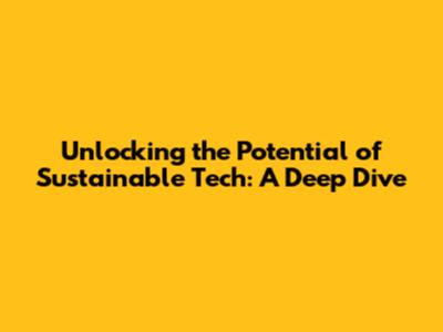 Unlocking The Potential Of Sustainable Tech: A Deep Dive