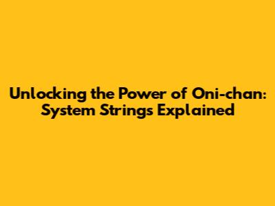 Unlocking The Power Of Oni-chan: System Strings Explained