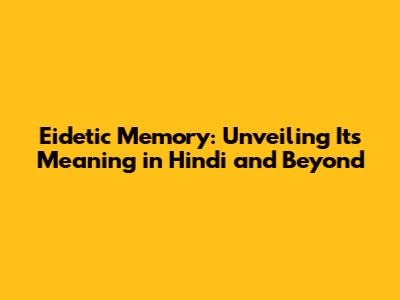 Decoding the Hindi Meaning of Eidetic Memory