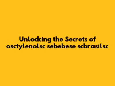 Unlocking The Secrets Of Osctylenolsc Sebebese Scbrasilsc