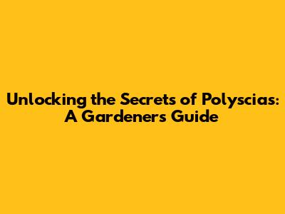 Unlocking The Secrets Of Polyscias: A Gardener's Guide