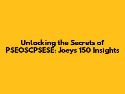 Unlocking The Secrets Of PSEOSCPSESE: Joey's 150 Insights