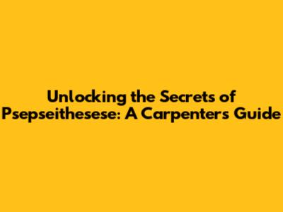Unlocking The Secrets Of 'Psepseithesese': A Carpenter's Guide
