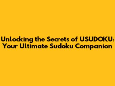 Unlocking The Secrets Of USUDOKU: Your Ultimate Sudoku Companion