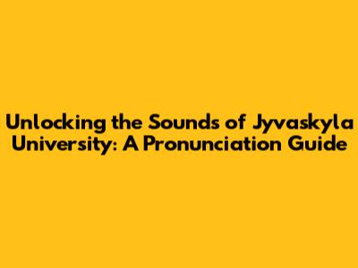 Unlocking The Sounds Of Jyvaskyla University: A Pronunciation Guide