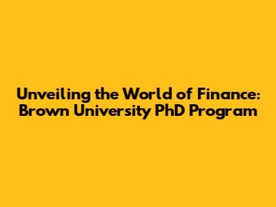 Unlocking Your Future: Brown University PhD In Finance