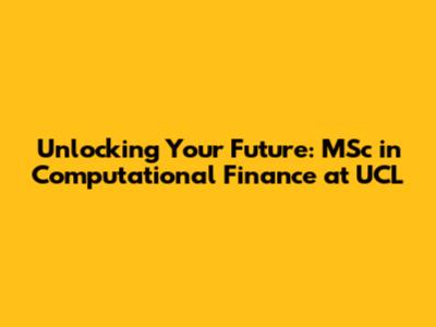 Unlocking Your Future: MSc In Computational Finance At UCL