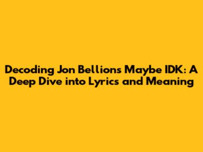 Unpacking Jon Bellion's 'Maybe IDK': Lyrics, Meaning & More