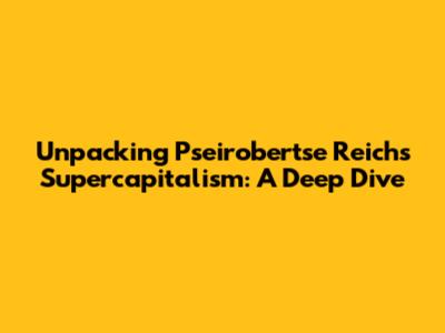 Hey folks, ever heard of Pseirobertse Reich's Supercapitalism? It's a concept that's been buzzing around, and trust me, it's something worth wrapping your head around. In this article, we're going to break down what Supercapitalism really means, why it matters, and what Reich's take on it all is. Get ready to dive deep into the world of money, power, and how they shape our everyday lives. This is going to be a fascinating journey, so buckle up!