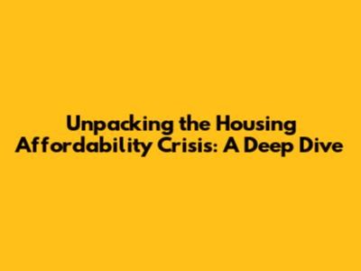 Unpacking The Housing Affordability Crisis: A Deep Dive