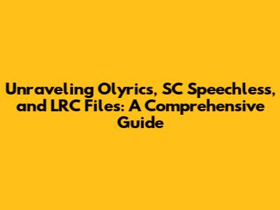 Unraveling Olyrics, SC Speechless, And LRC Files: A Comprehensive Guide