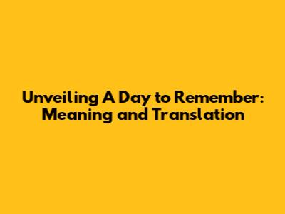Unveiling A Day To Remember: Meaning And Translation