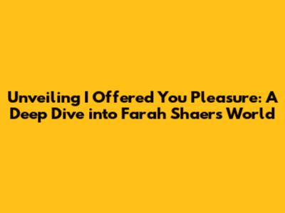 Hey guys! Ever stumble upon something that just… grabs you? That's how I felt when I first encountered Farah Shaer's work, specifically her track, "I Offered You Pleasure." It's not just a song; it's an experience. A deep dive into the human heart, wrapped in layers of mystique and raw emotion. So, let's unpack this beauty, shall we? We'll explore the core themes, the artistic choices, and what makes this piece resonate so powerfully with so many of us. Buckle up; it's going to be a fun ride!