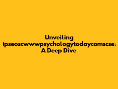Unveiling Ipseoscwwwpsychologytodaycomscse: A Deep Dive