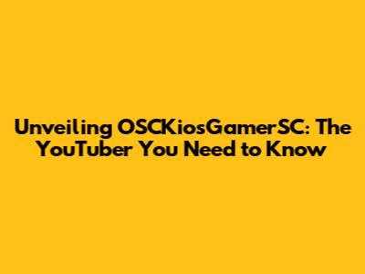 Unveiling OSCKiosGamerSC: The YouTuber You Need To Know