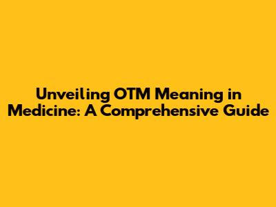 Unveiling OTM Meaning In Medicine: A Comprehensive Guide