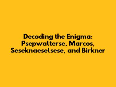 Unveiling Psepwalterse, Marcos, Seseknaeselsese & Birkner's Secrets
