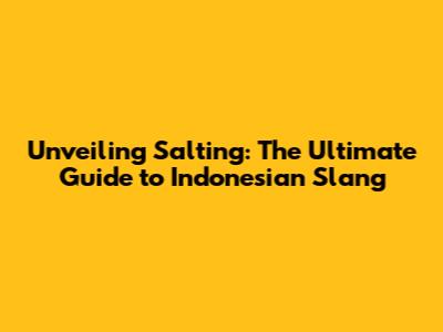 Unveiling 'Salting': The Ultimate Guide To Indonesian Slang