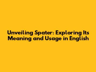 Unveiling 'Spater': Exploring Its Meaning And Usage In English