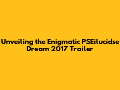 Unveiling The Enigmatic 'PSEilucidse Dream' 2017 Trailer