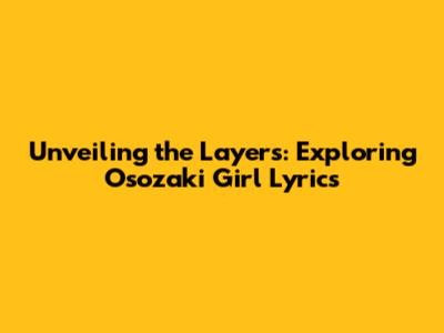 Unveiling The Layers: Exploring Osozaki Girl Lyrics