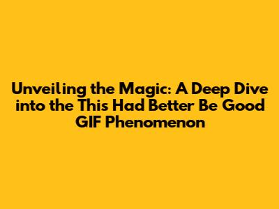 Unveiling The Magic: A Deep Dive Into The 'This Had Better Be Good' GIF Phenomenon