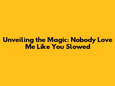 Unveiling The Magic: 'Nobody Love Me Like You' Slowed